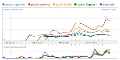 Mahtaako olla ensimmäinen homo presidentti tulossa Suomeen? Pekka Haavisto on ollut nousussa niin gallupeissa kuin Googlen hakusuosiossakin (kuva).
